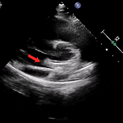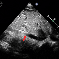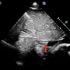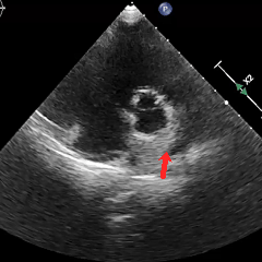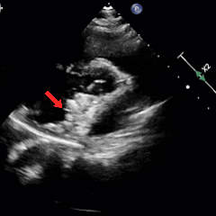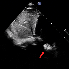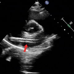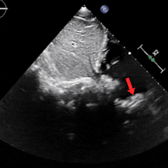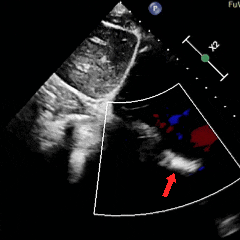 大动脉短轴切面下PannaWire多功能导丝进入隧道并顺利通过卵圆孔