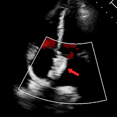 术后1周复查心脏彩超提示可降解封堵器形态位置良好,无残余分流,周围其他结构无异常。