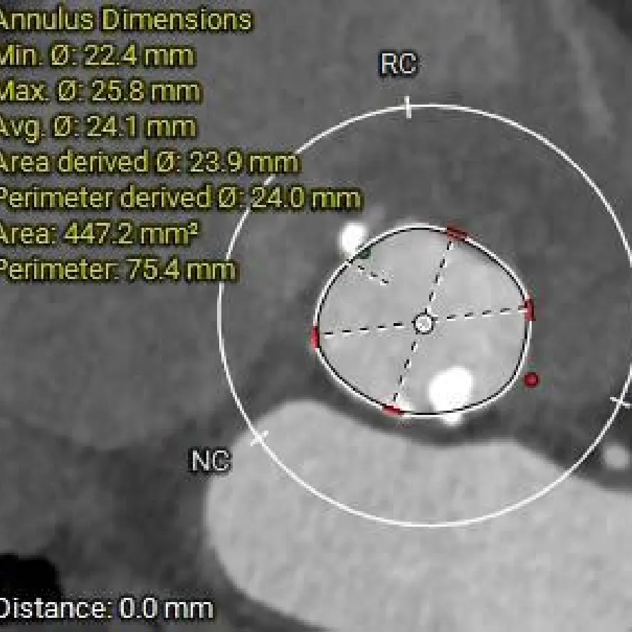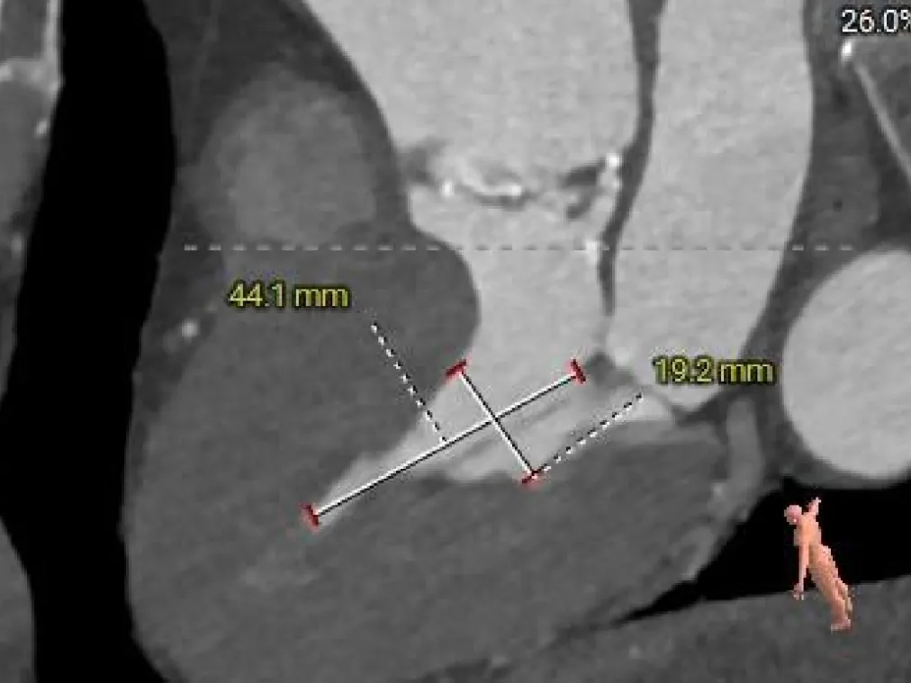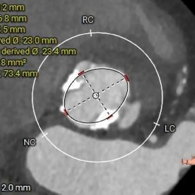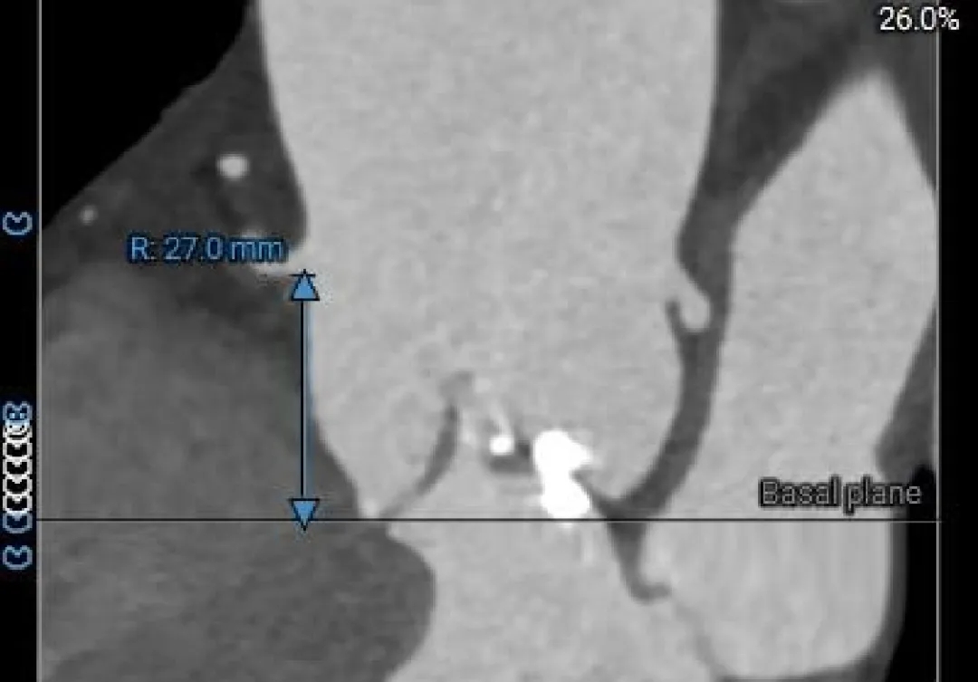 瓣环径约为24.0mm,流出道偏收口型,心室壁增厚,收缩期小心室;