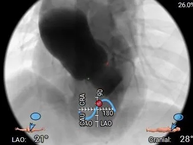 脱钩后造影,瓣膜位置可,几乎无瓣周漏