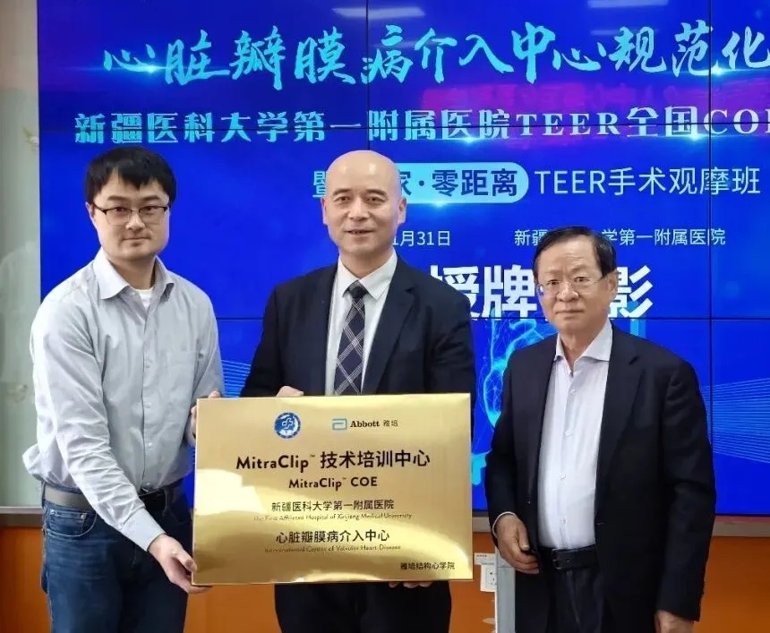新疆医科大学第一附属医院心血管病中心是具有现代诊疗模式和国内一流诊疗设备的临床、教学、科研中心。拥有省部级重点实验室、新疆心血管病研究所、新疆心血管介入诊疗质控中心、新疆心血管介入诊疗培训基地。依托完善的学科布局与雄厚的平台积淀,心血管病中心在心脏瓣膜病介入治疗领域实现了新的突破,不仅为患者带来了生的希望,也为推动我国结构性心脏病整体诊疗水平注入了强劲的“西北力量”。随着MitraClip全国COE技术培训中心正式启航,医院将继续秉承“以患者为中心”的理念,不断提升医疗技术和服务质量,为患者心血管健康筑起一道坚实的防线。
