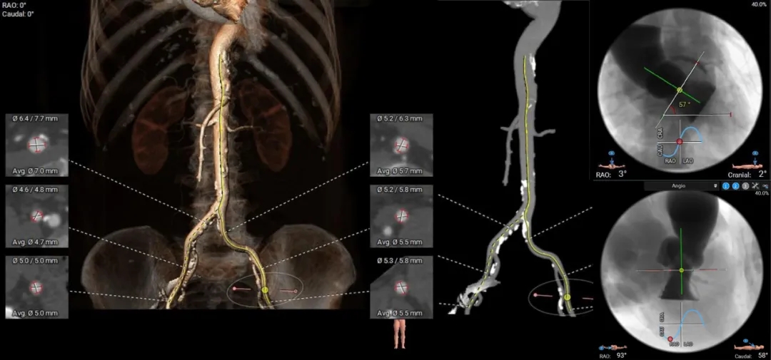 双侧股-髂入路部分钙化附着,整体入路轻微迂曲,血管内径可、偏小;