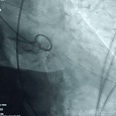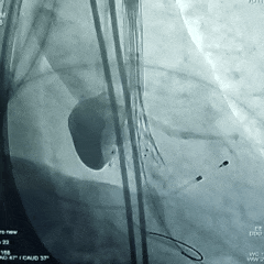 现病史:5年前急性前壁ST段抬高型心梗,急诊造影前降支根部闭塞,术中室颤20余次,IABP辅助下急诊开通前降支,残存狭窄30%,未植入支架,一直药物治疗。近3年反复心衰入院,彩超提示主动脉瓣狭窄,狭窄程度进行性加重。3天前气喘加重,日常活动明显受限,为进一步治疗入院。