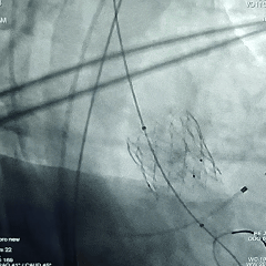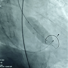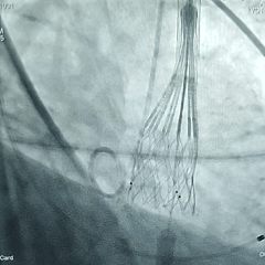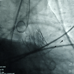 手术操作:该患者窦部偏心钙化且延伸至流出道,瓣上结构锚定充足,术中需充分确保瓣膜轴向,切勿提拉输送器,保证导丝张力,同时瓣膜需精准定位,高位或0位附近释放,确保瓣膜在瓣环以下锚定。在瓣膜完全展开后需多角度评估,观察瓣膜的形态及位置,确保稳定后再行脱钩释放。