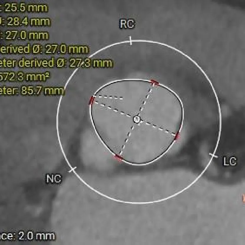 瓣环径约为26.4mm,流出道偏直筒型;