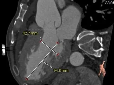 瓣环水平夹角59°,横位心临界值,升主动脉明显扩张;