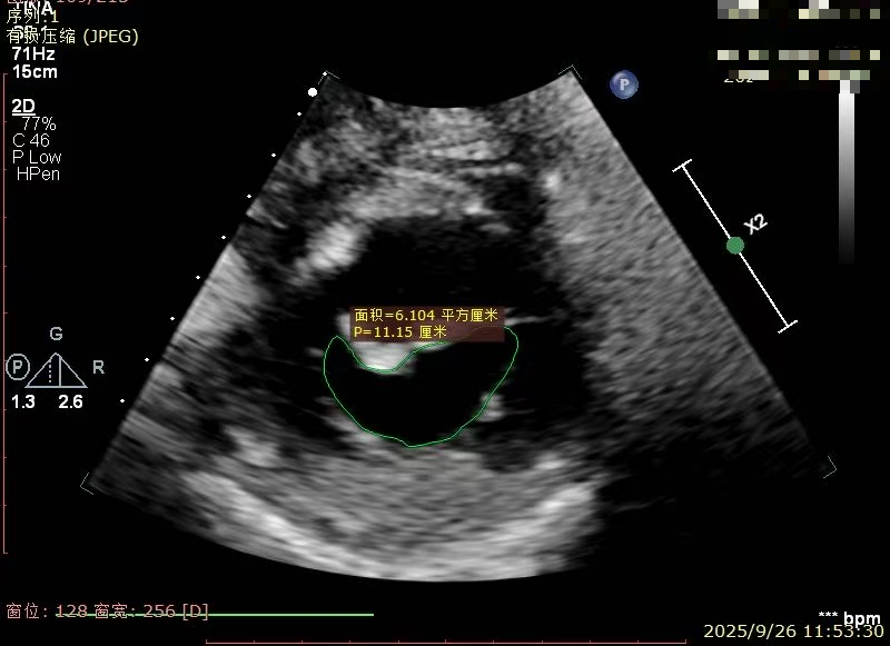经胸短轴测得瓣口面积约6.1cm2