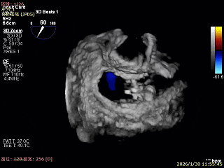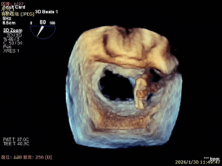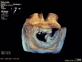 选择带定位键TaurusTrio先处理主瓣,考虑2区前叶连枷后叶栓系,缠绕风险高,先在3区前叶脱垂但未连枷Gap小的位置先植入一枚XTR,优先解决内侧反流同时增加瓣叶对合,减少第二枚夹子植入难度。