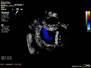 3D Enface 可见反流由2区3区从前后冲出