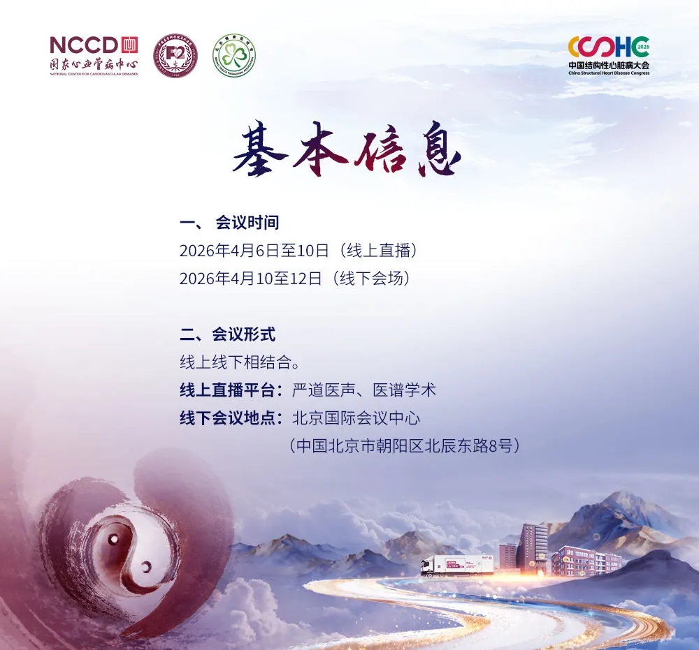 CSHC2026 | 4.6-12 第七届中国结构性心脏病大会即将召开 2026-02-12 17:40:00 浏览量:851 ✦ • ✦ 大会官网 观看直播 · END · 专业的心血管医生学术交流平台 医谱APP 点击下载 医谱学术 点击关注 版权及免责声明: 本网站所发表内容知识产权归属医谱平台、主办方以及原作者等相关权利人,未经许可,禁止进行复制、传播、展示、镜像、转载、摘编等。经授权使用,须注明来源,否则将追究其法律责任。有关作品内容、版权和其他问题请与本网联系