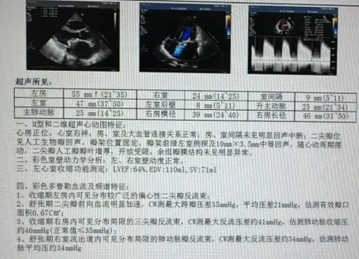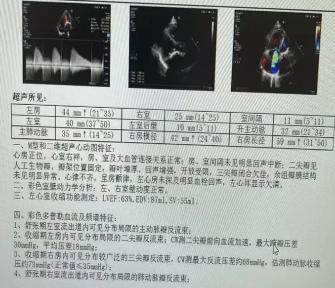 三尖反流(中度),主动脉反流(轻度),肺动脉瓣反流(轻度)
