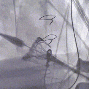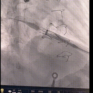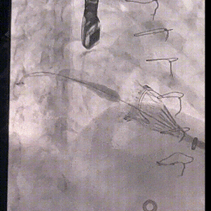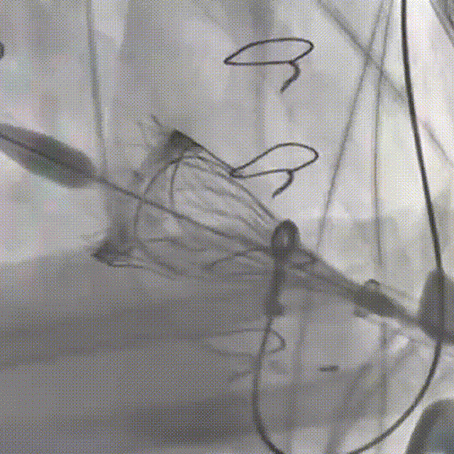160bpm起搏下初次释放瓣膜,瓣膜同轴性欠佳