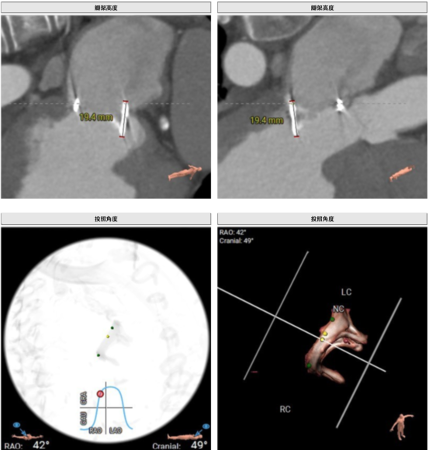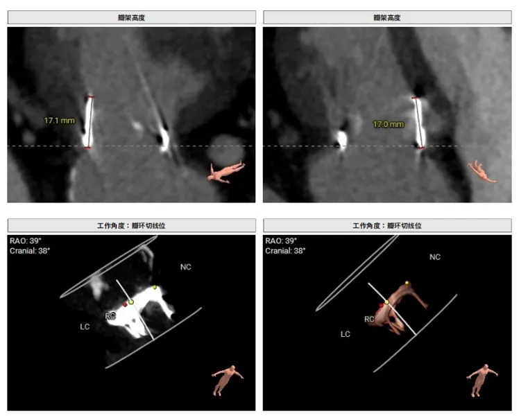工作角度-瓣环切线位:RAO39°CRA38°