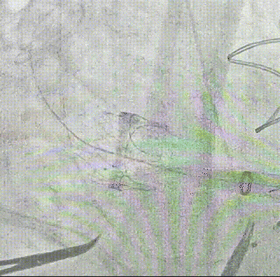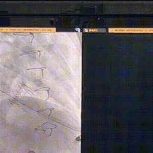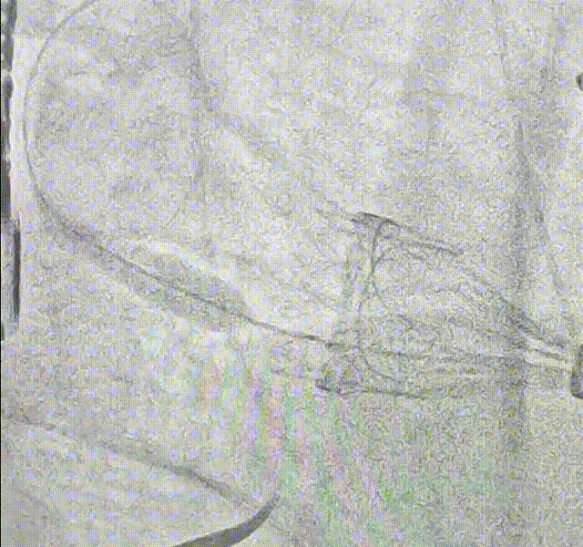 24mm球囊后扩,因鞘管显影不佳,难以观察导致后撤鞘管长度不够,因此球囊前期未完全打起,调整后扩张充分