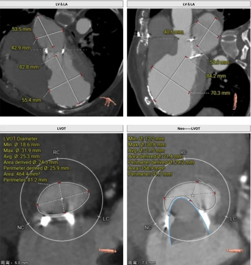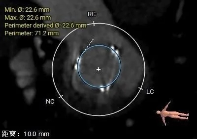 LVOT:22.6mm,NEO-LVOT:23.5mm,模拟植入介入瓣后,流出道剩余面积尚可