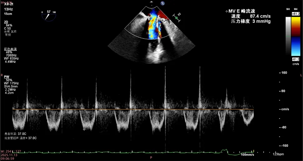 TEE评估峰值流速仅0.8m/s
