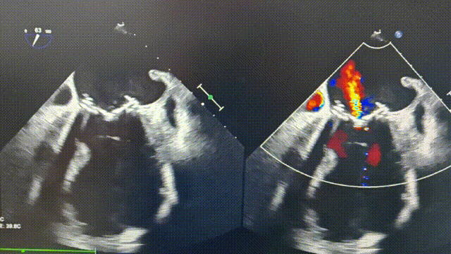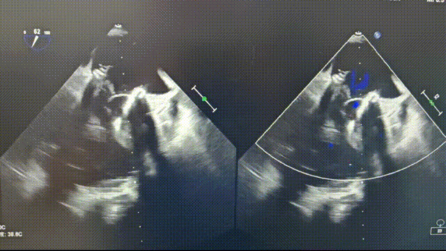 150bpm起搏下全部展开,TEE评估少量瓣周漏