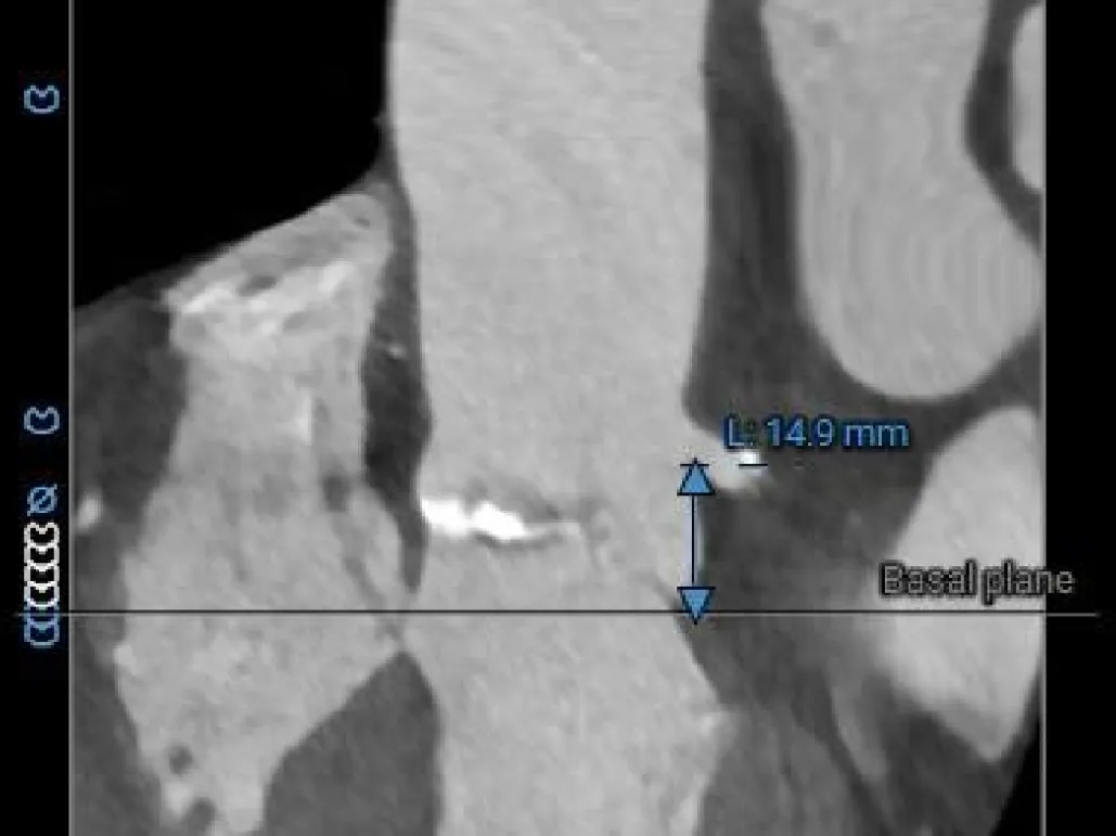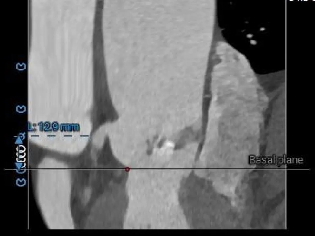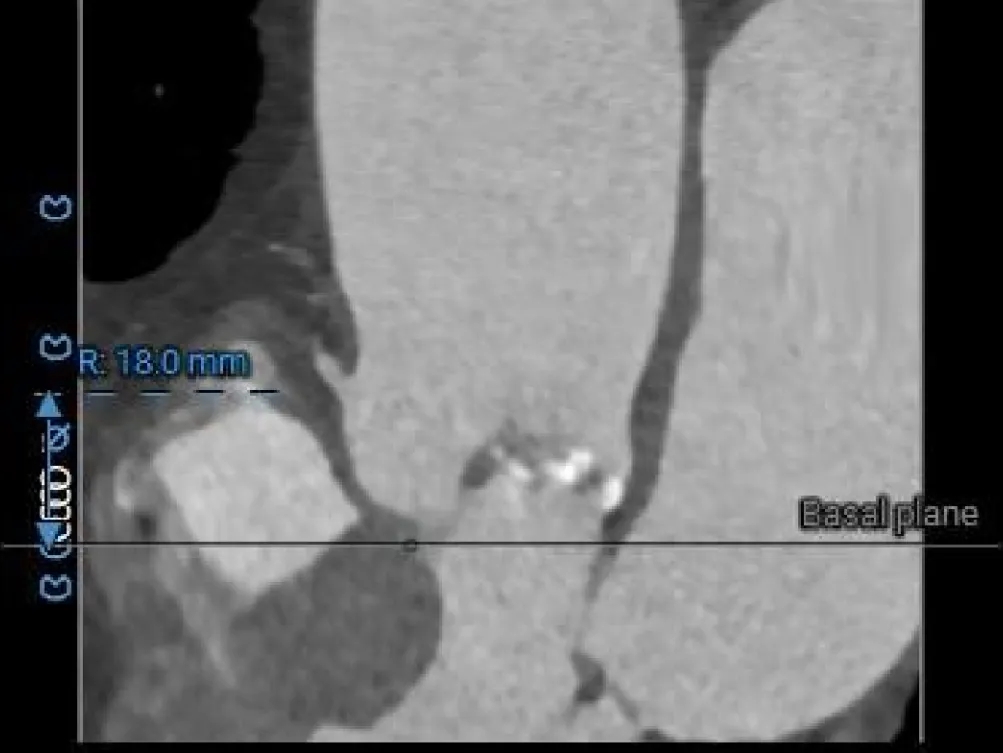 TYPE1型二叶瓣重度狭窄,L-R融合,75°横位心,伴中重度钙化TAVR