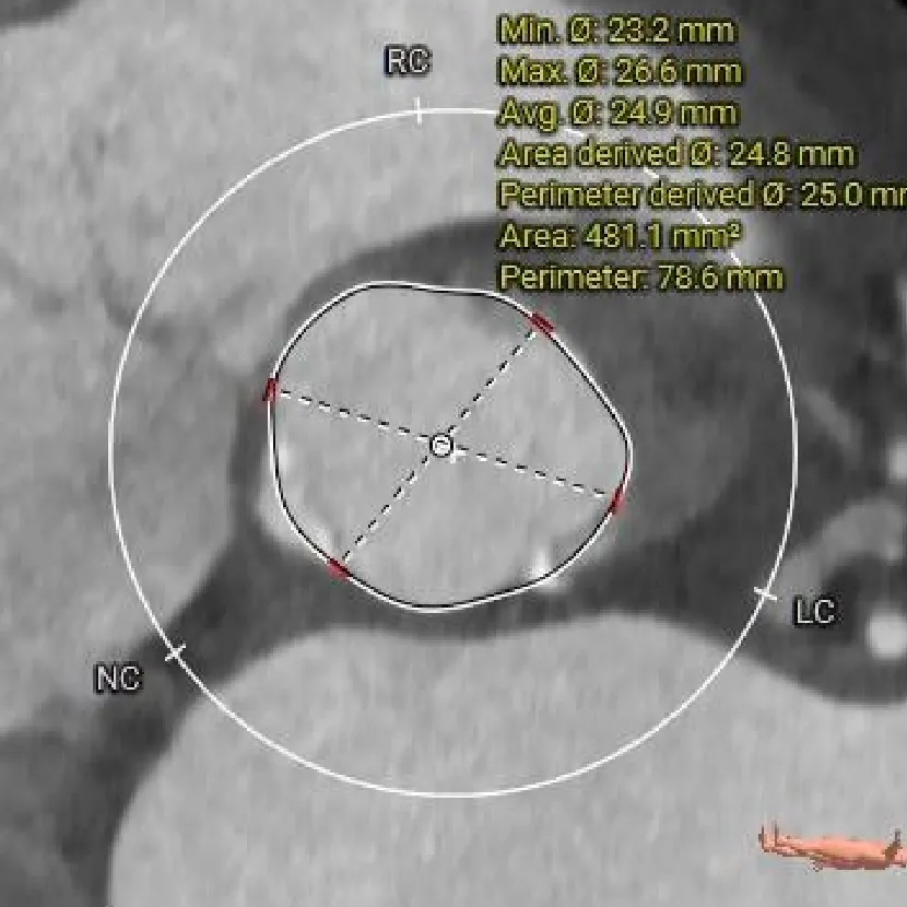 根据瓣环及瓣上结构选择 ScienCrown TF25mm瓣膜。