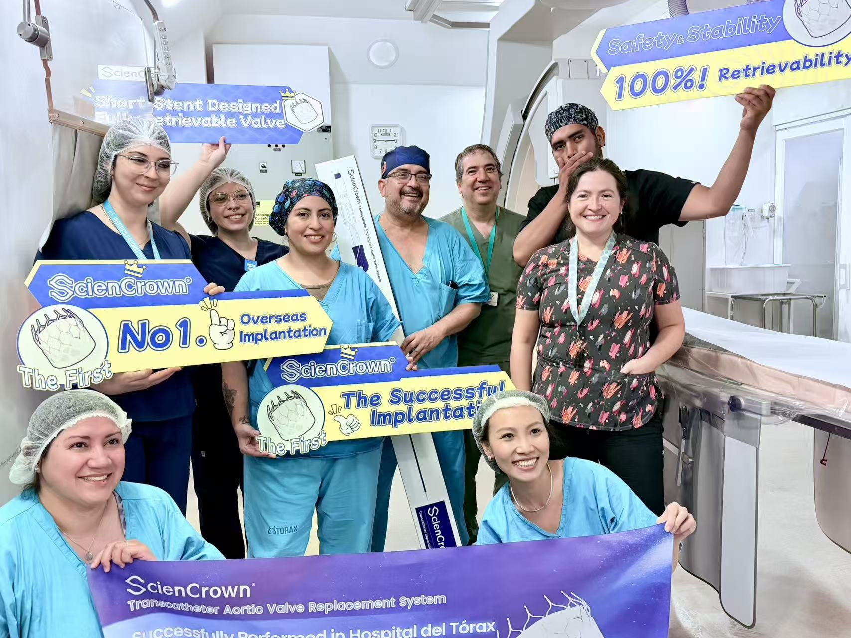 本次首批手术由该院Cristian Dauvergne教授、Jorge Sandoval教授及其团队主导完成,手术过程非常顺利。两位患有严重主动脉瓣狭窄的患者术后恢复良好,均未出现明显瓣周漏及其他并发症,血流动力学得到即刻且显著改善,目前,均已康复出院。ScienCrown产品临床表现优异,获得了国际临床中心认可与高度评价。