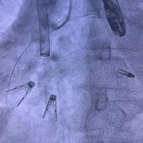 对患者三尖瓣瓣环和右冠跟瓣环距离等完成多维度评估后,充分结合其病变特点与解剖结构细节,确立以双夹K-Clip®植入为核心的精准治疗方案。手术操作中,14T型号K-Clip®植入三尖瓣后隔交界处,16T型号K-Clip®则植入前后交界处。该术式通过双点定位植入的精准操作,可有效缩减三尖瓣瓣环直径、提升瓣叶对合效能,从解剖学层面直接纠正三尖瓣反流,为患者术后顺利恢复提供关键的结构支撑。
