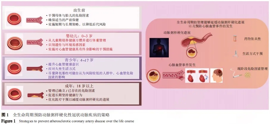 如果想延缓ACAD的发生发展以及减少ACAD相关事件的出现,需要强调预防工作的前移。所以除了比较熟悉的一级预防和二级预防,应强调零级预防亦称为源头预防(primordial prevention)的重要性,进行全生命周期的监测、预防,力争将ACAD扼杀在摇篮里(图1)。