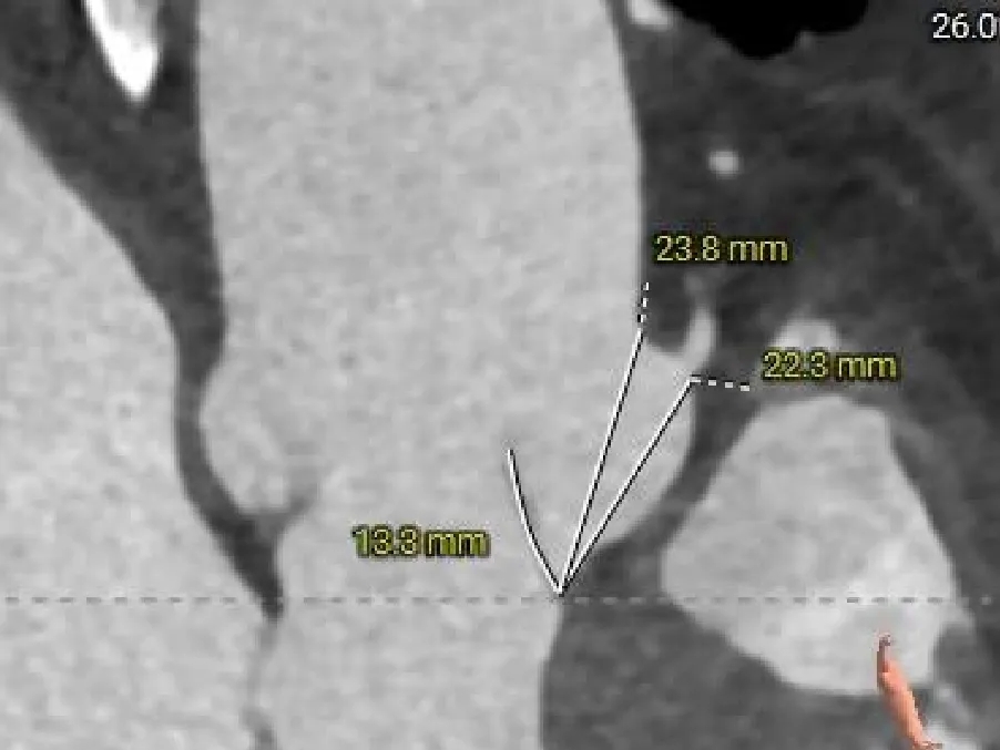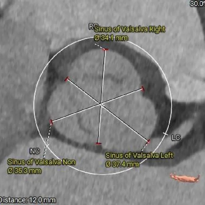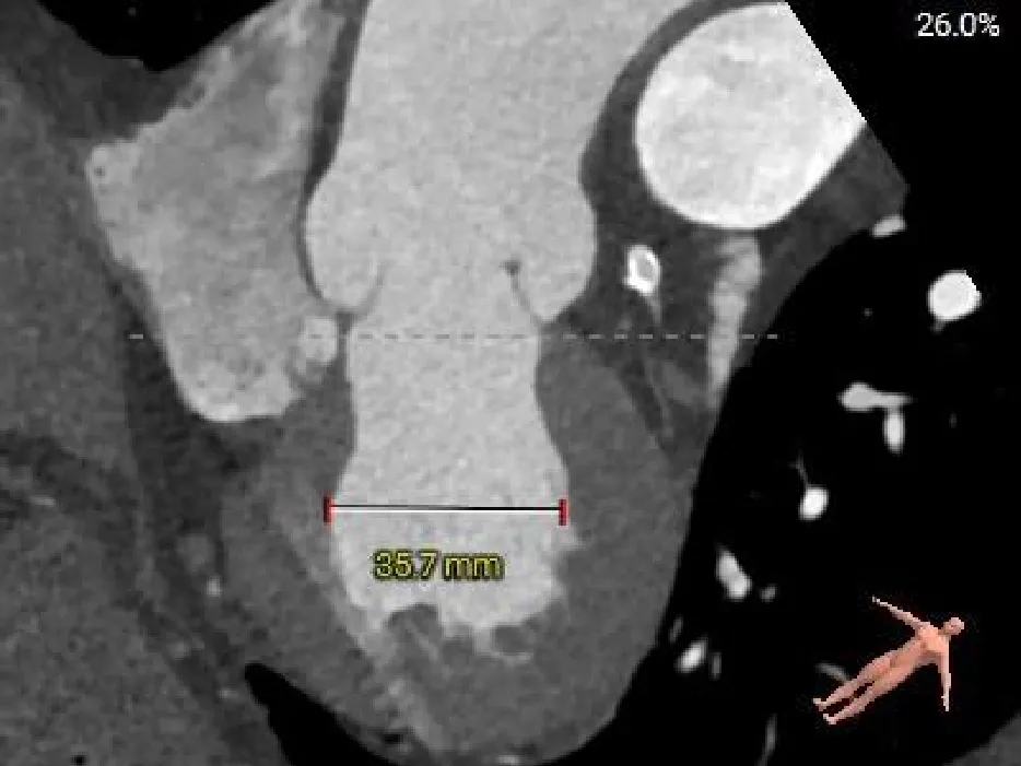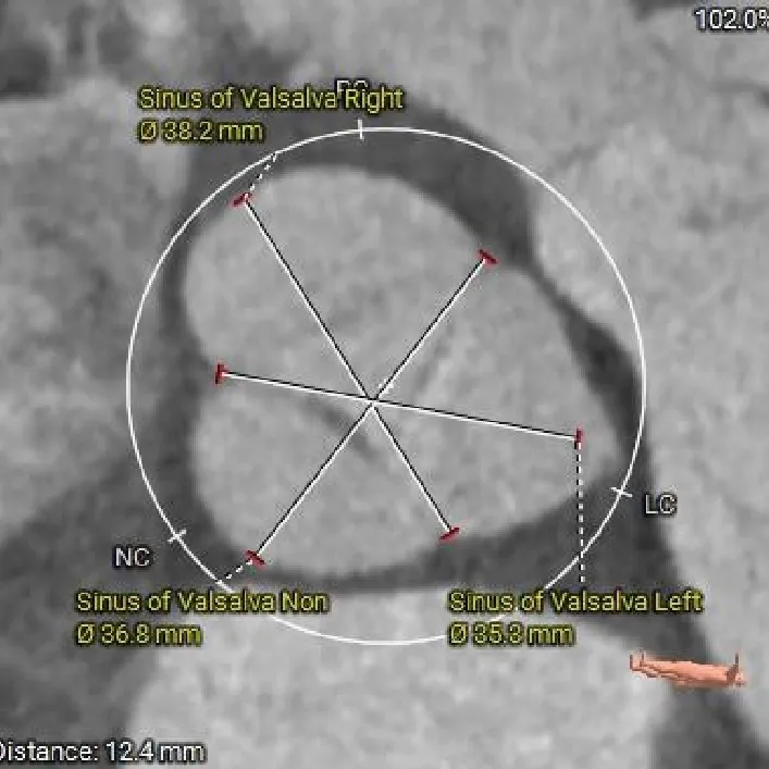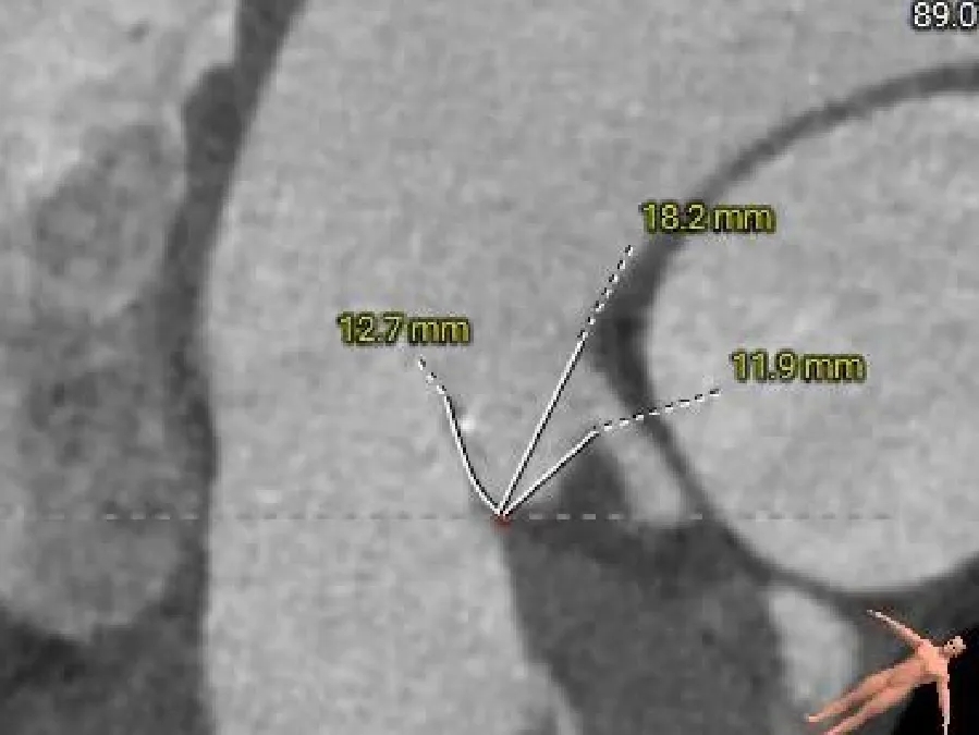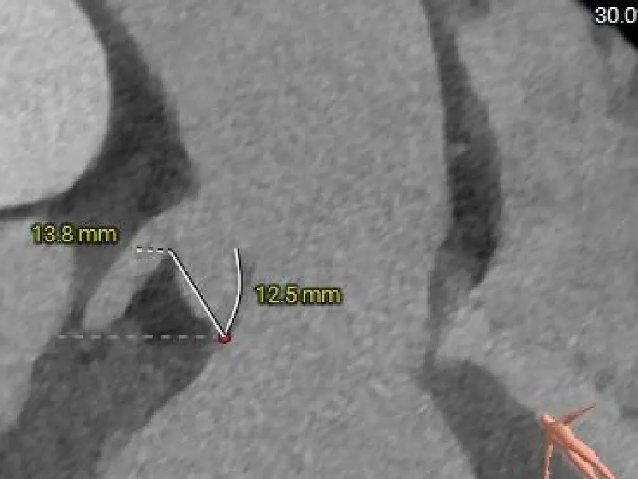 冠脉开口高度可,瓣叶稍长,结合瓦氏窦大小,预估冠脉风险相对较低