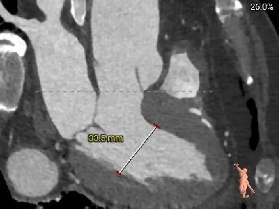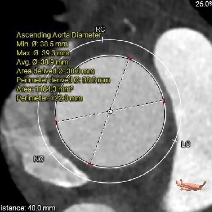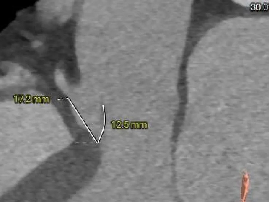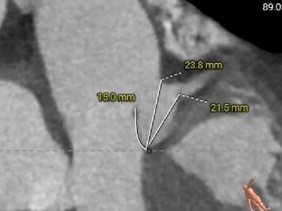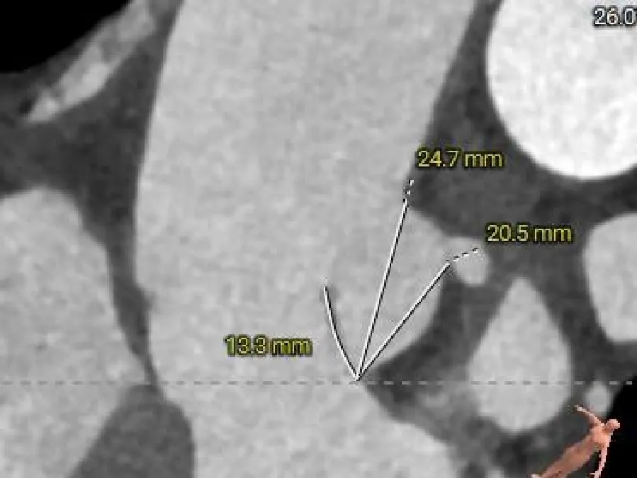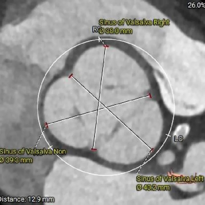 冠脉开口高度可,瓣叶稍长,结合瓦氏窦大小,预估冠脉风险相对较低