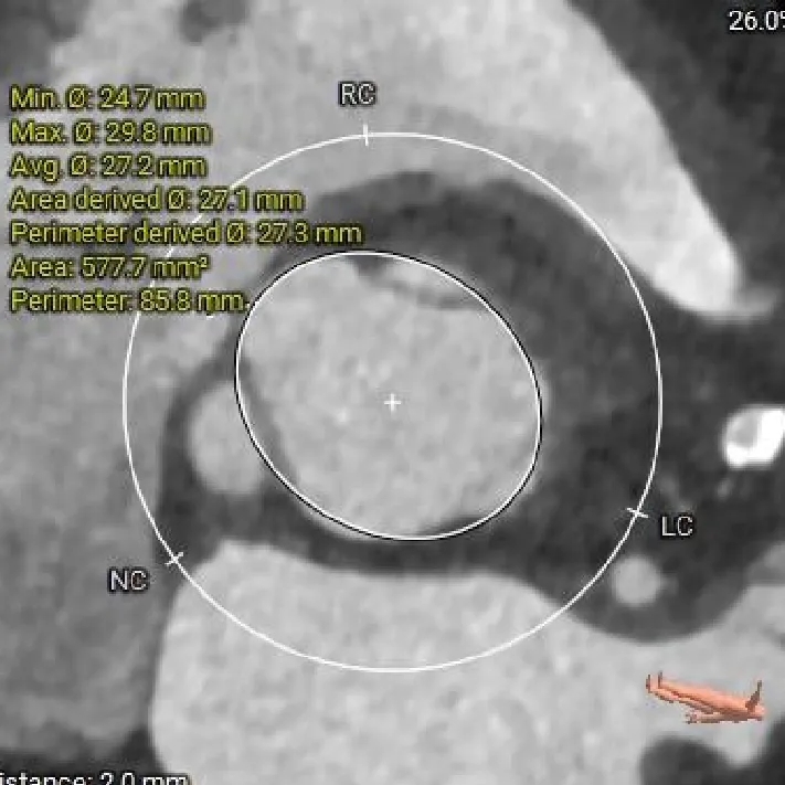 瓣膜型号:ScienCrown TAVTF29mm(oversize 11.97%);