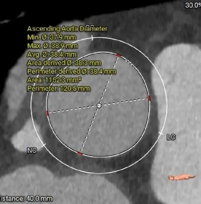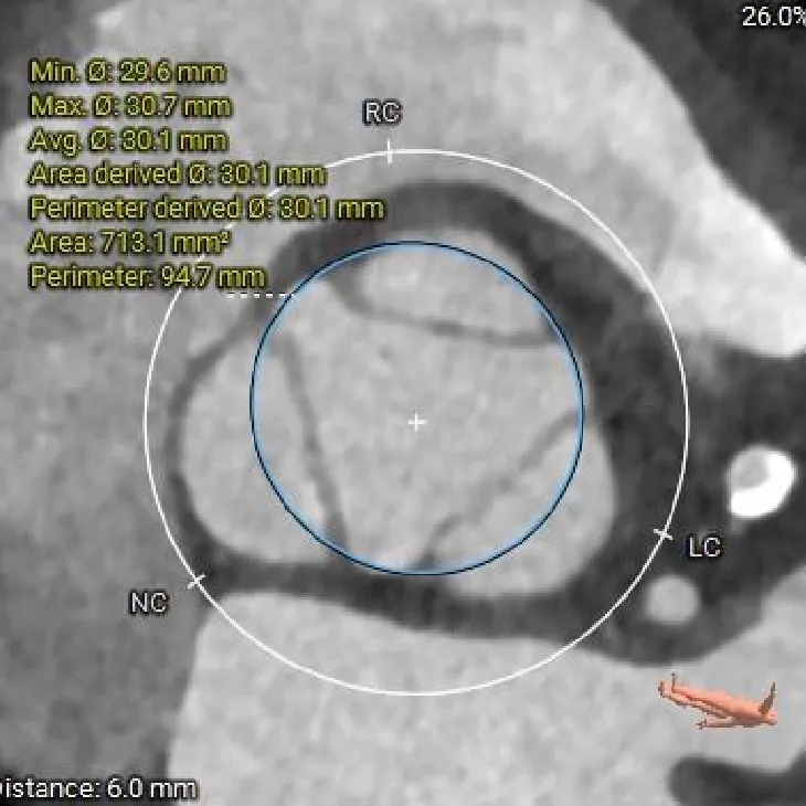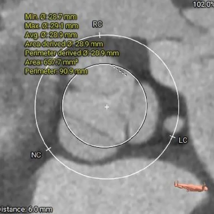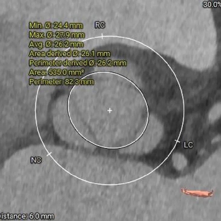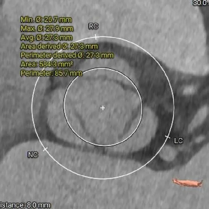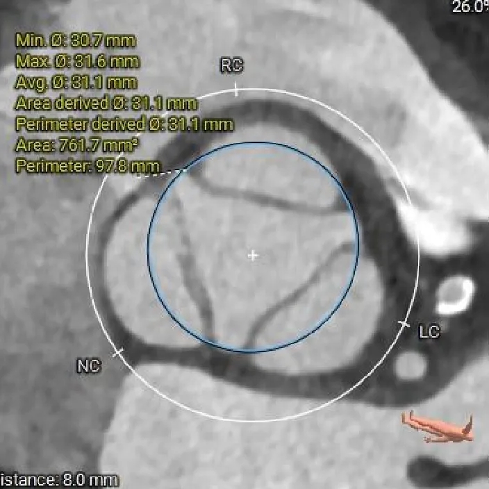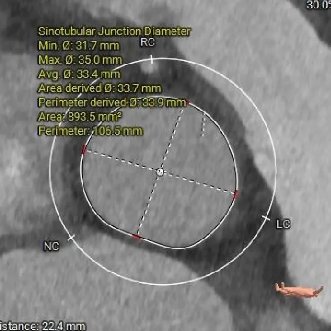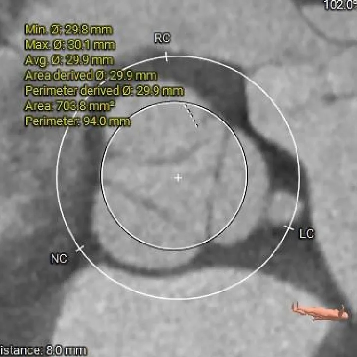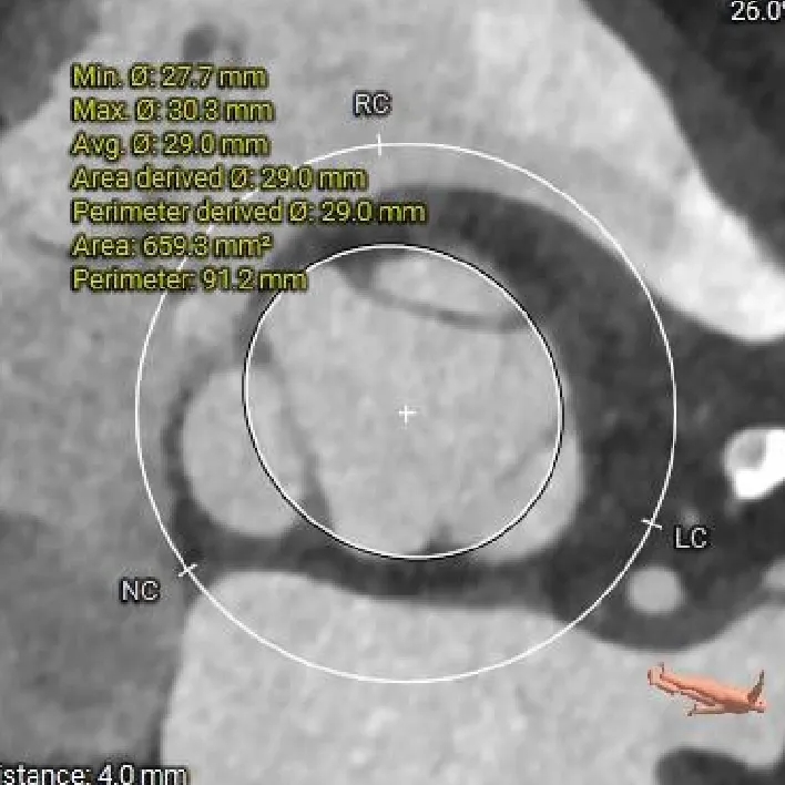 瓣膜型号:ScienCrown TAVTF29mm(oversize 9.02%);