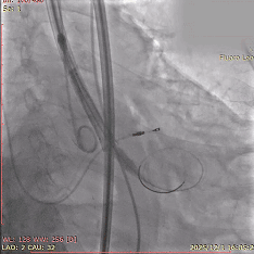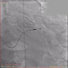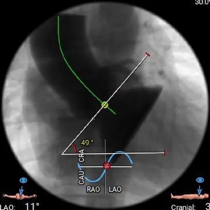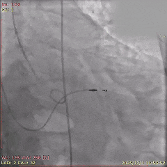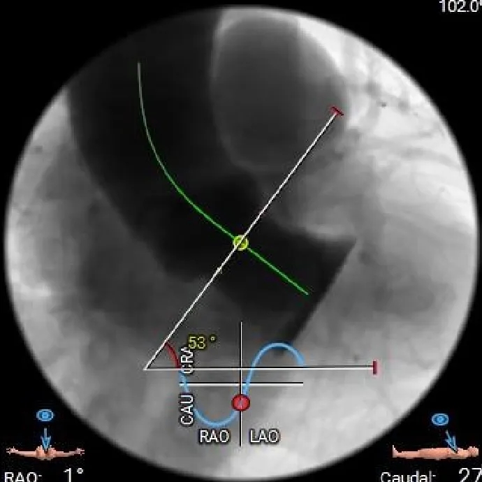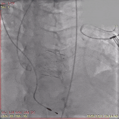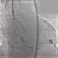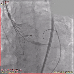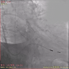 手术操作:该患者流出道敞口型,流出道无锚定力,需充分利用瓣上空间参与锚定,瓣膜需0位附近释放,术中通过顶导丝等操作保证瓣膜同轴性,当瓣膜完全展开后,多角度评估其稳定性。