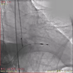 脱钩后造影,瓣膜位置可,无瓣周漏