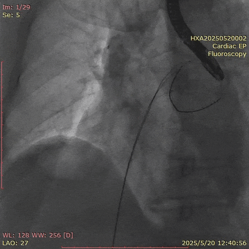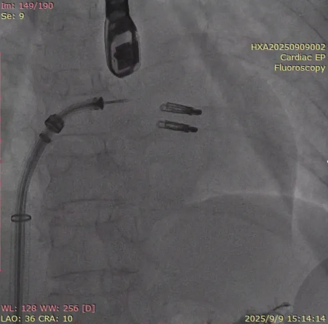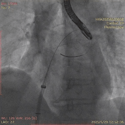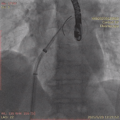 图1. 房间隔穿刺处肥厚,GC难以通过房间隔