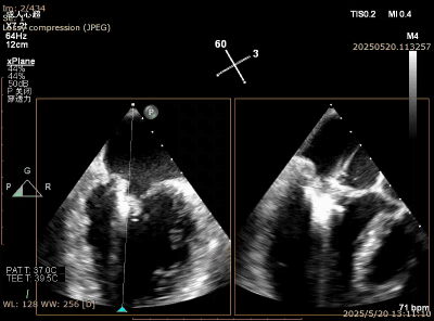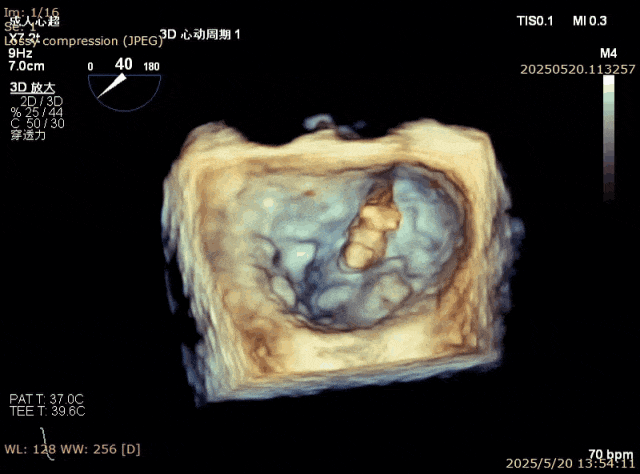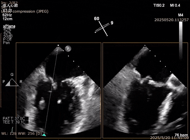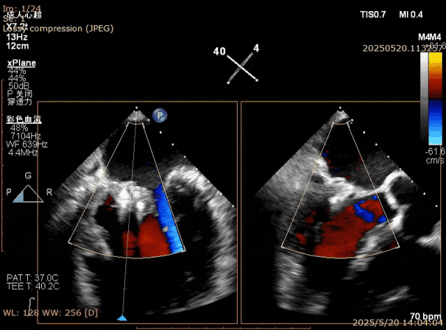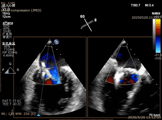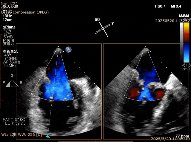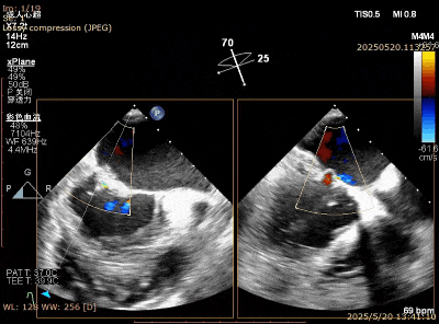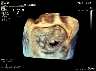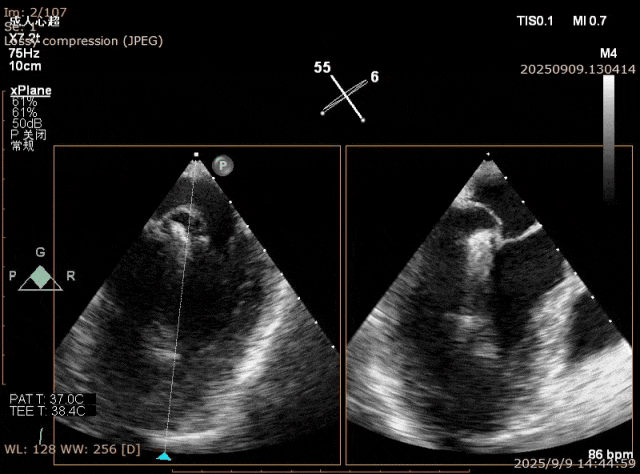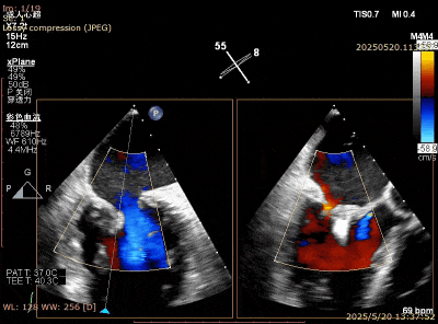 图8. 上一个病例,Barlow样改变,A3,P2, P3脱垂,靠内交界区甩动更严重