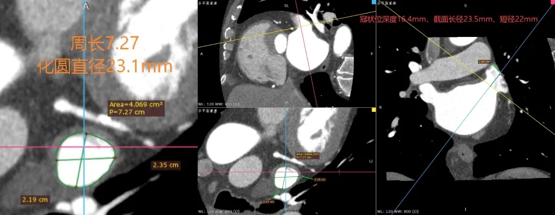 左心耳开口近圆形,MPR周长72.7mm,化圆直径23.1mm。