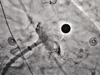 封堵器释放后造影,无残余分流
