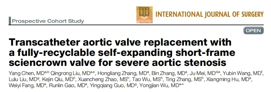 近日,乐普心泰首款全可回收自膨式短支架ScienCrown TAVR系统的前瞻性多中心临床试验一年随访结果正式发表于国际外科权威期刊《International Journal of Surgery》,研究由中国医学科学院阜外医院吴永健教授团队牵头,于2021年9月至2022年9月在全国16家中心共同完成,结果证实该系统在重度AS治疗中兼具卓越的安全性与有效性,尤其在BAV、重度钙化等临床高难度病例中表现优异,为国产TAVR器械的临床应用再添重磅循证证据,也为中国特色AS人群的TAVR治疗提供了个性化解决方案。