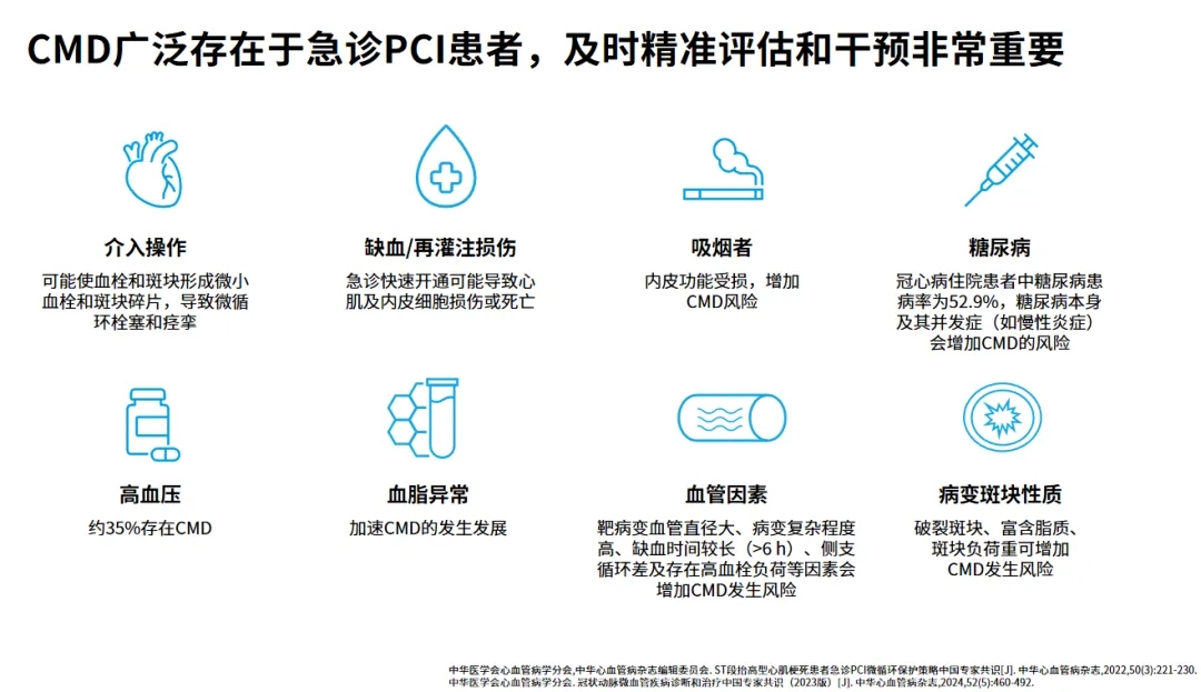 ▶ 合并下列因素的急诊PCI患者,应更加关注术后CMD: