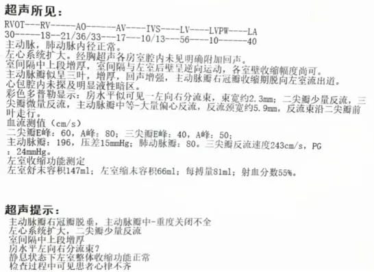 超声提示:主动脉瓣右冠瓣脱垂,主动脉瓣中-重度关闭不全,左心系统扩大,二尖瓣少量反流。