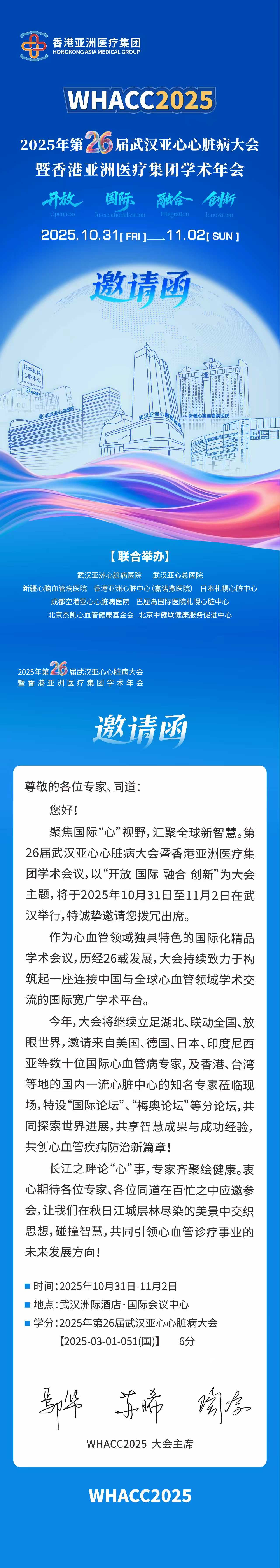 2025第26届武汉亚心心脏病大会 暨香港亚洲医疗集团学术会议